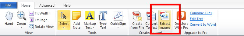 La manipulation est très simple, on ouvre le pdf avec NitroPDF, on clique sur "Extract Images".