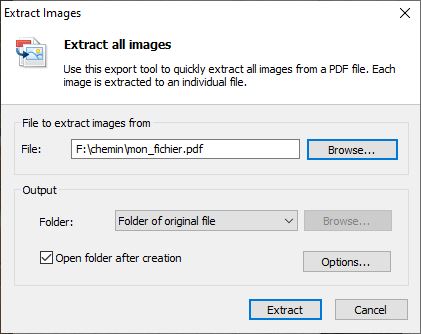 Vous pouvez choisir le dossier de destination pour les images. Par défaut elle iront dans le même dossier que le pdf.