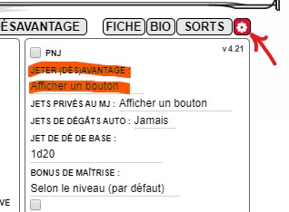 Tu peux malgré tout régler ça dans la partie paramètre de la fiche (onglet avec un engrenage), il s'agit de la partie jeter avec avantage de mémoire et tu as le choix entre toujours, jamais, demande.