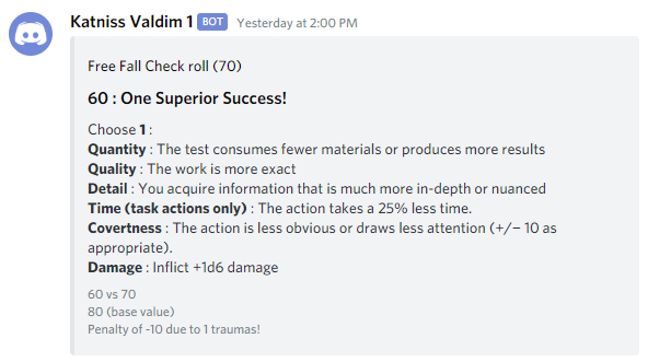 Ce que j'ai fait, c'est jsute rajouter un système pour que quand tu faits un jet de dés sur ta fiche de perso, ça envoye le résultat directement sur un serveur discord