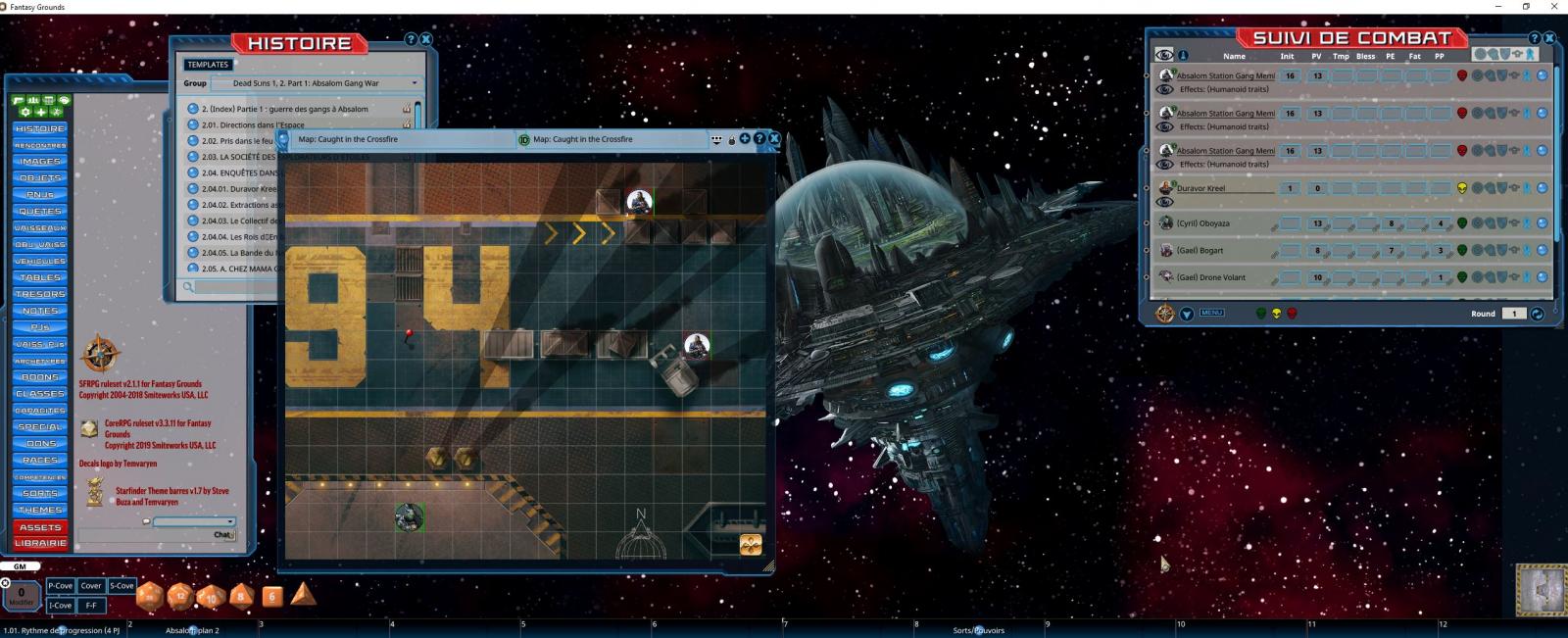 PS: l'extension ne contient aucun texte du jeu, il vous faut posseder le jeu, le Ruleset Starfinder est inclus, lui, de base dans Fantasy Grounds.