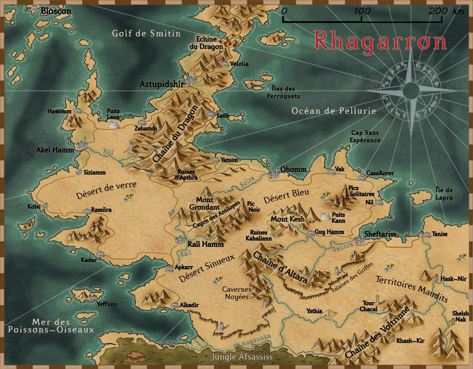 Il y a aussi le nom des mers et océan. La mer intérieure qui borde le sud-est d’Alarian est censée être aussi celle qui borde la côte ouest des terres d’Osgild. Pourtant sur la carte des terres d’Osgild, il est écrit océan Pelurique. Dans le cadre de campagne d’Alarian, la mer intérieure est appelée mer de Pellurie puis trois paragraphes plus loin, mer Pélagique. Je sais bien que ceux ne sont que des points de détail. Je voulais seulement savoir si c’était de simples erreurs de cohérence et quel était le nom préférable à utiliser.