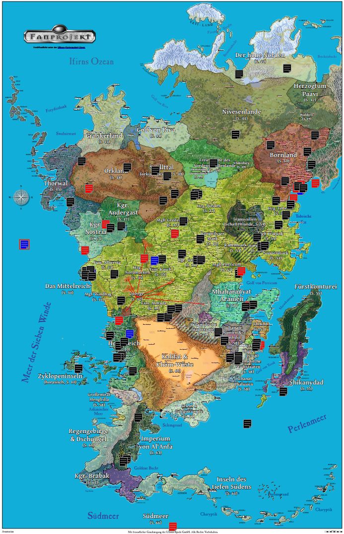 Sinon la base de la carte est la carte politique DSA4 de 2011 modifiée par Stelle Thorjins (sous la licence Ulisses Kartenpaket). Donc je devrais être dans les clous concernant la licence BBE-ON V5.