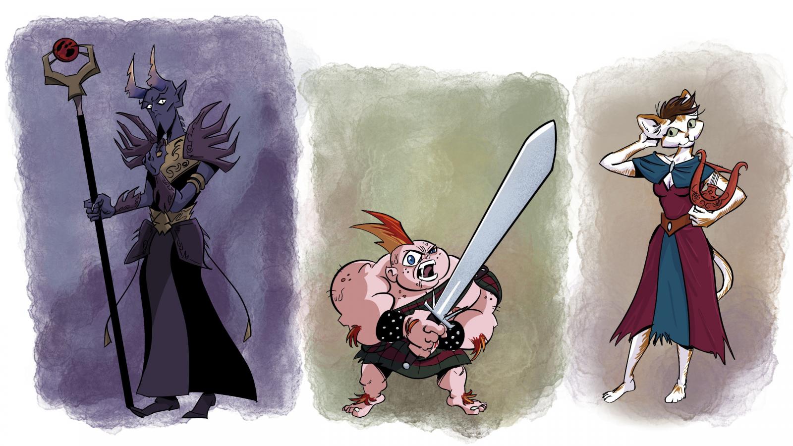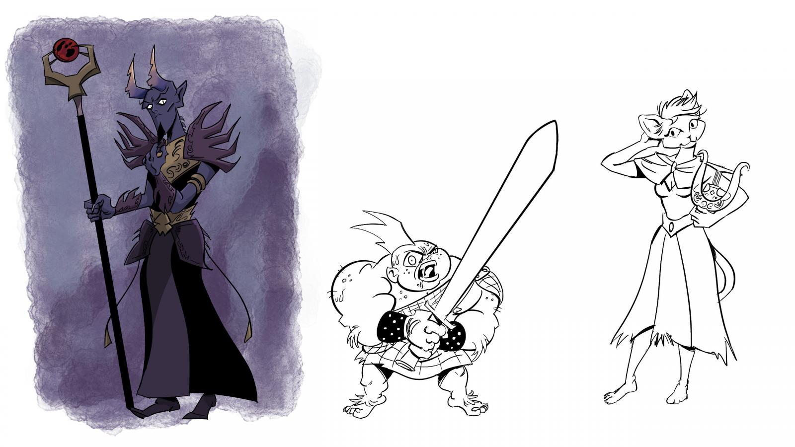 Découvrez dans ce premier épisode les ébauches d'un halfelin barbare, d'un nain joueur de viole de gambe, d'un elfe snipper, d'un antipaladin demi-ogre et j'en passe (mais où sont mes cachets ?)