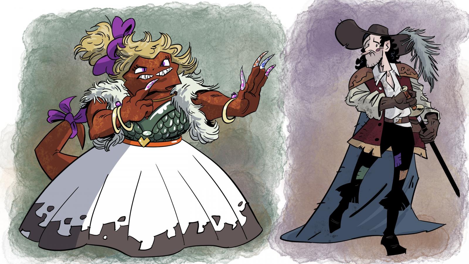 Deux nouveaux PJs dessinés hier soir : Œil de Braise, sangdragonne de 17 ans capricieuse, et Jean-Edmond de Millépée, bretteur en stage. Pour participer et retrouver les fiches des persos : https://discord.gg/rkCMWUQ
