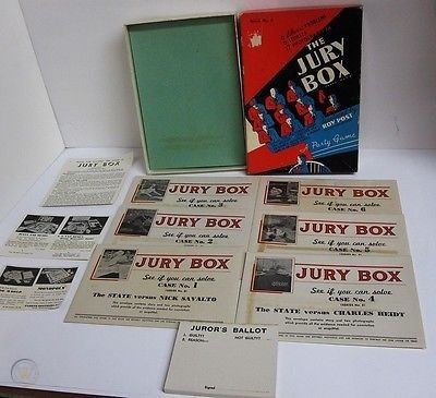 En 1937 est éditée la boite de jeu Jury box (de Roy Post), un parlour game qui ressemble trait pour trait à un jeu de rôle systemless, avec un meneur de jeu (le District Attorney) et des joueurs (les membres du jury) qui doivent décider de la culpabilité ou de l'innocence d'accusés dans 6 affaires différentes. Avec scénarios et aides de jeu (dont des photos) !