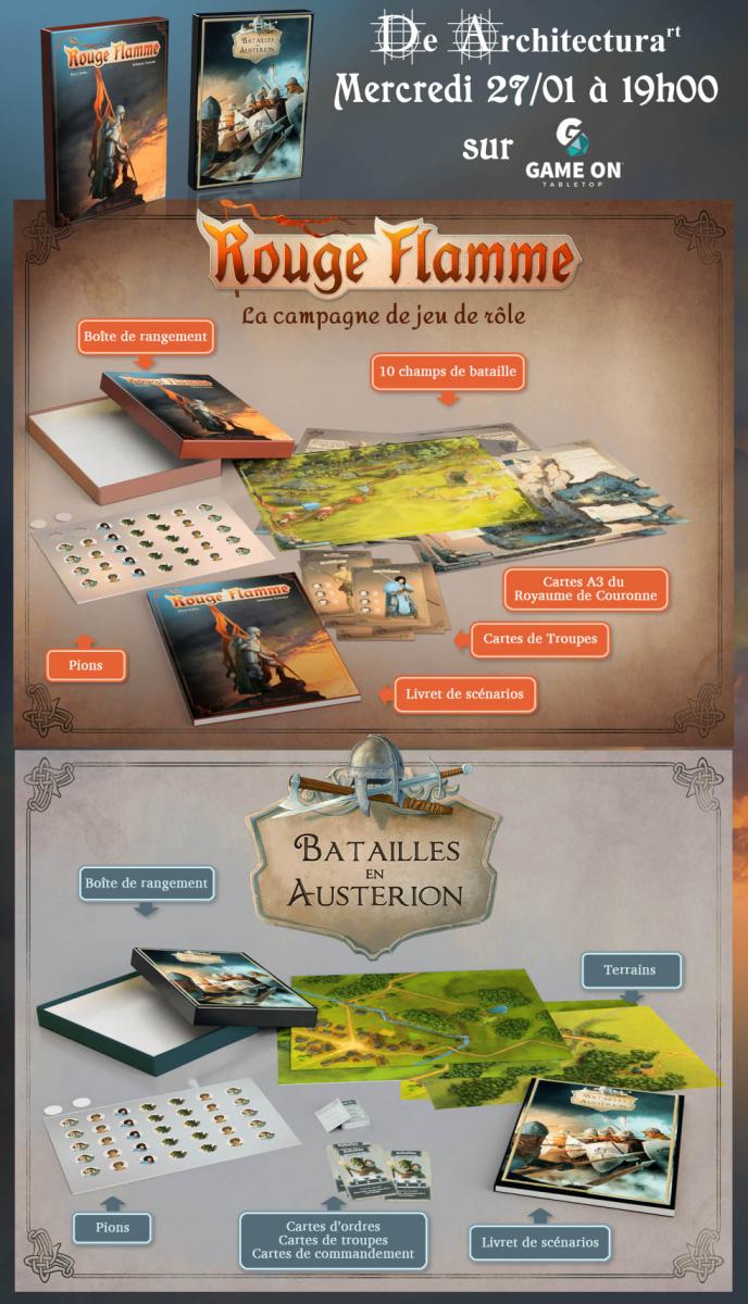 "La campagne de Rouge Flamme sera lancée sur Game On Tabletop le mercredi 27/01. Pour ne pas louper le lancement nous vous invitons à vous inscrire ici :