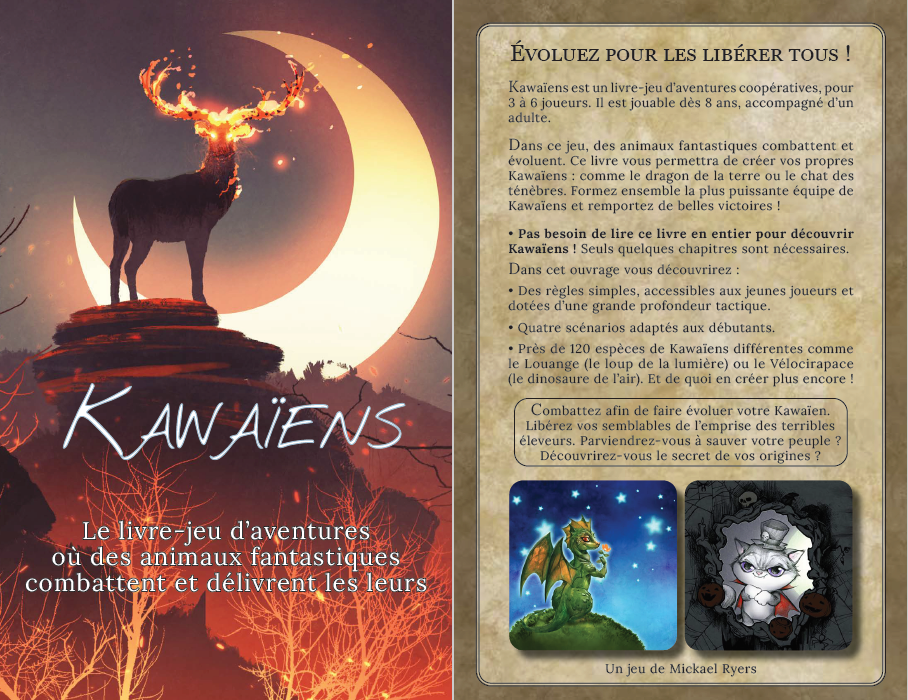 Kawaïens vous permet d’incarner des animaux fantastiques comme le Chassassin (le chat des Ténèbres) ou le Dracoterre (le dragon de la Terre). Les Kawaïens combattent afin d’évoluer vers de nouvelles formes et de délivrer leurs semblables. Le système de jeu est léger et tactique.