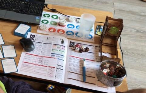 Mini petit conseil : il manquerai selon moi une pile "dés de vie" pour visualiser ce qu'il reste vis à vis des repos court (j'ai griffoné sur une des piles PV). Mais sinon c'est top, y compris pour la gestion des consommables !