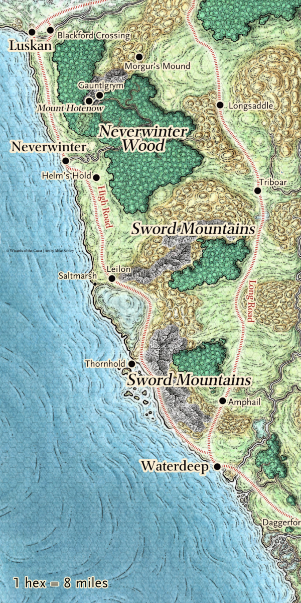 De plus il me semble que par rapport au placement "historique" dans le monde de Greyhawk, la route Waterdeep/Neverwinter est beaucoup trop fréquentée.