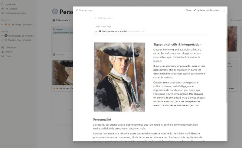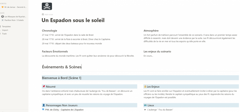 Je viens de découvrir Notion mais j'avoue que j'ai du mal à organiser "from scratch" ma campagne car ça part un peu dans tous les sens assez vite. Est-ce que tu accepterai d'envoyer quelques captures d'écran / appercus de comment tu l'utilises ? content