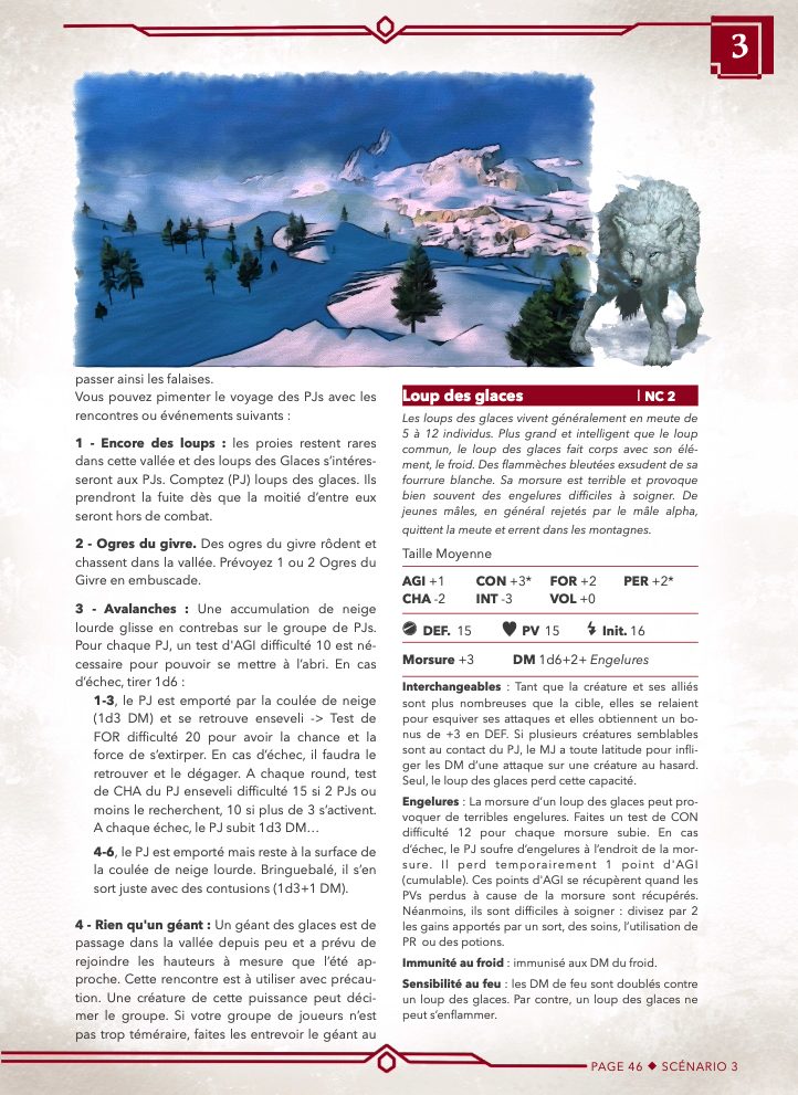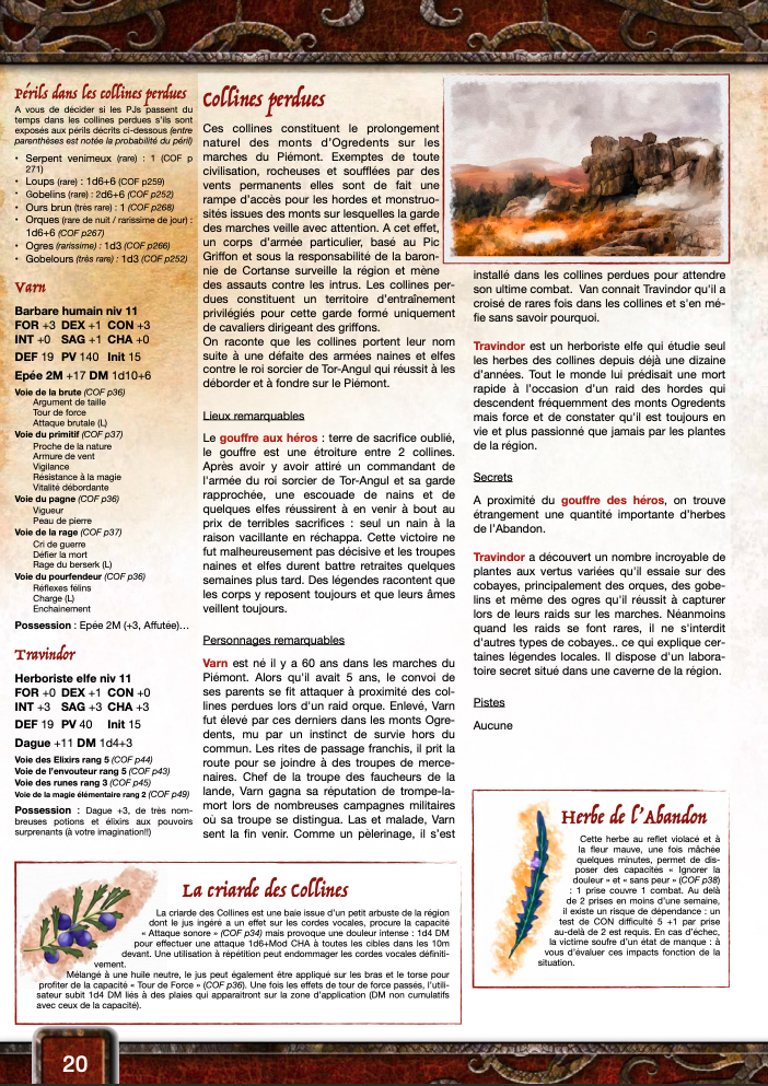 - L'aventure 3 "Les monts d'Ogredents" peut faire un scénario indépendant, le groupe de PJs souhaitant traverser au plus vite une chaine de montagne. (niv 2)