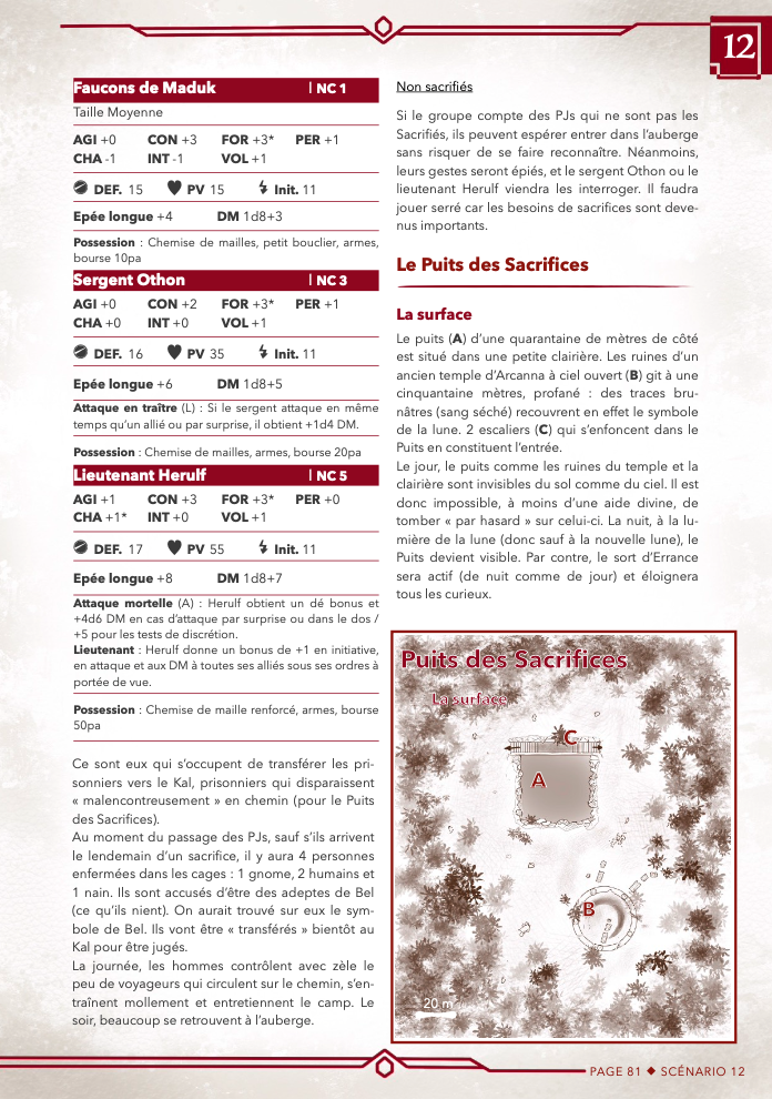 Comme non joués, il y a surement des problèmes d'équilibrages : ainsi, si vous avez des retours, ils sont les bienvenus pour affiner la partie technique du scénario.