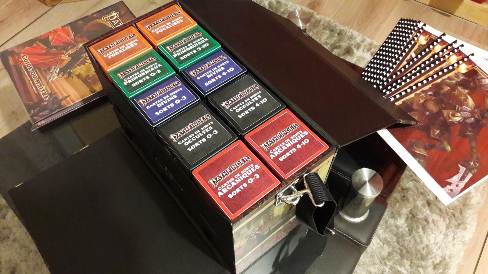Je fais de même avec l'étui de la campagne L'Attaque de l'Essaim de Starfinder, pour ranger le "Deck of Many Worlds" dont j'ai acheté le PDF chez Paizo et que j'ai imprimé