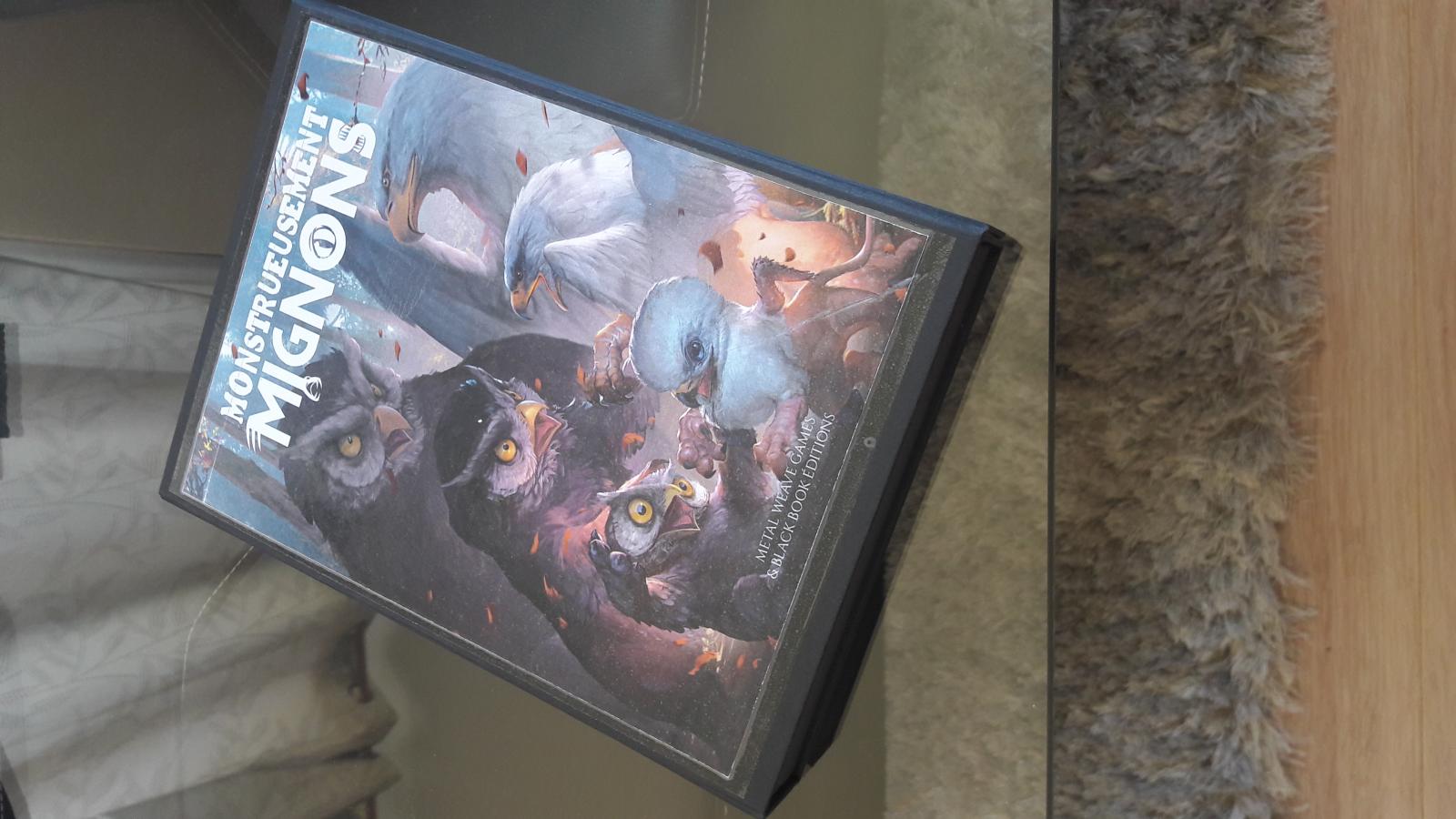 Le petit dernier. J'ai plastifié les feuilles en épais pour la jouabilité (et pouvoir écrire dessus au marqueur effaçable) et j'ai trouvé une boite pile de la bonne taille (une belle boite en carton noir au format A5 avec en bonus des rabats aimantés)