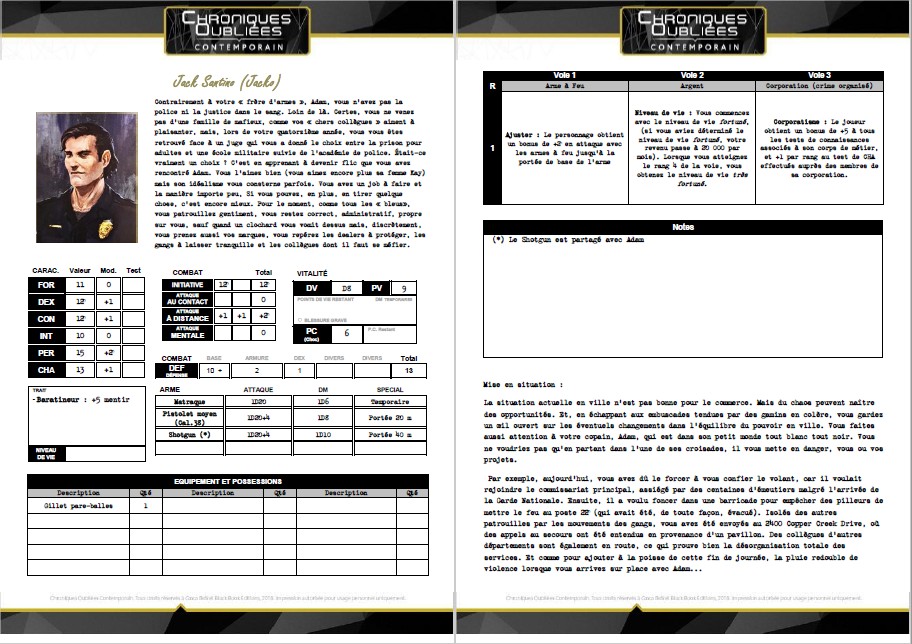 Dans le cadre de ma table de JDR, j'ai décidé de jouer la campagne du titre. Etant donné que je n'ai pas trouvé les feuilles des personnages pré-tirés, je les ai réalisées.