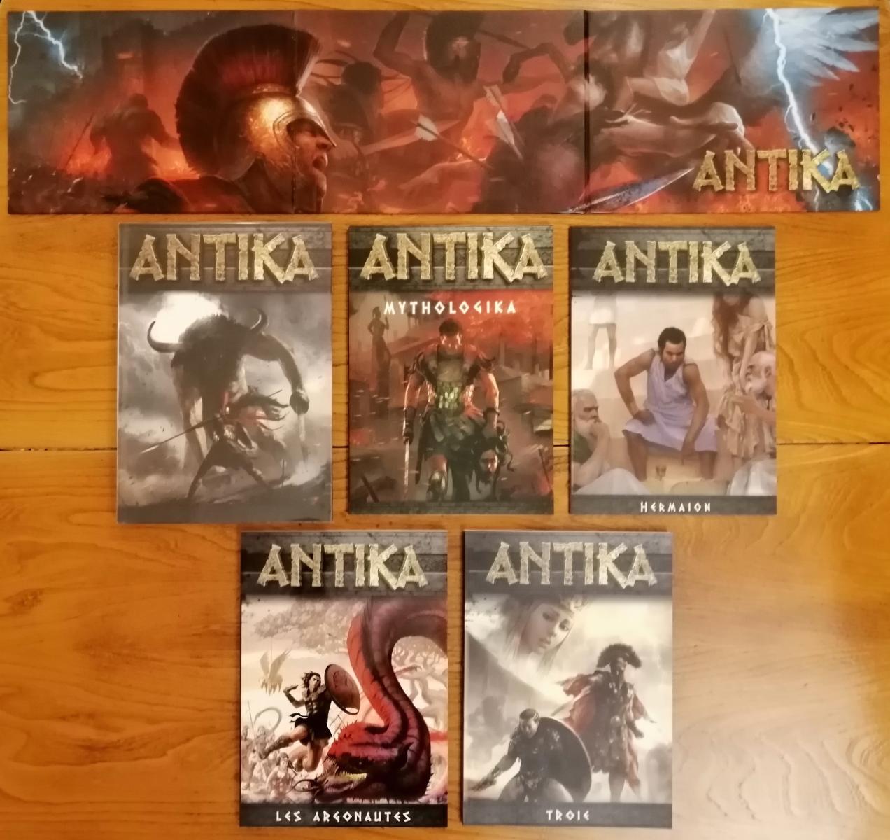ANTIKA 1e édition [LOT VENDU EN COURS] = Livre de base * ; Écran rigide ; Mythologika ; Hermaion ; Les Argonautes ; Troie