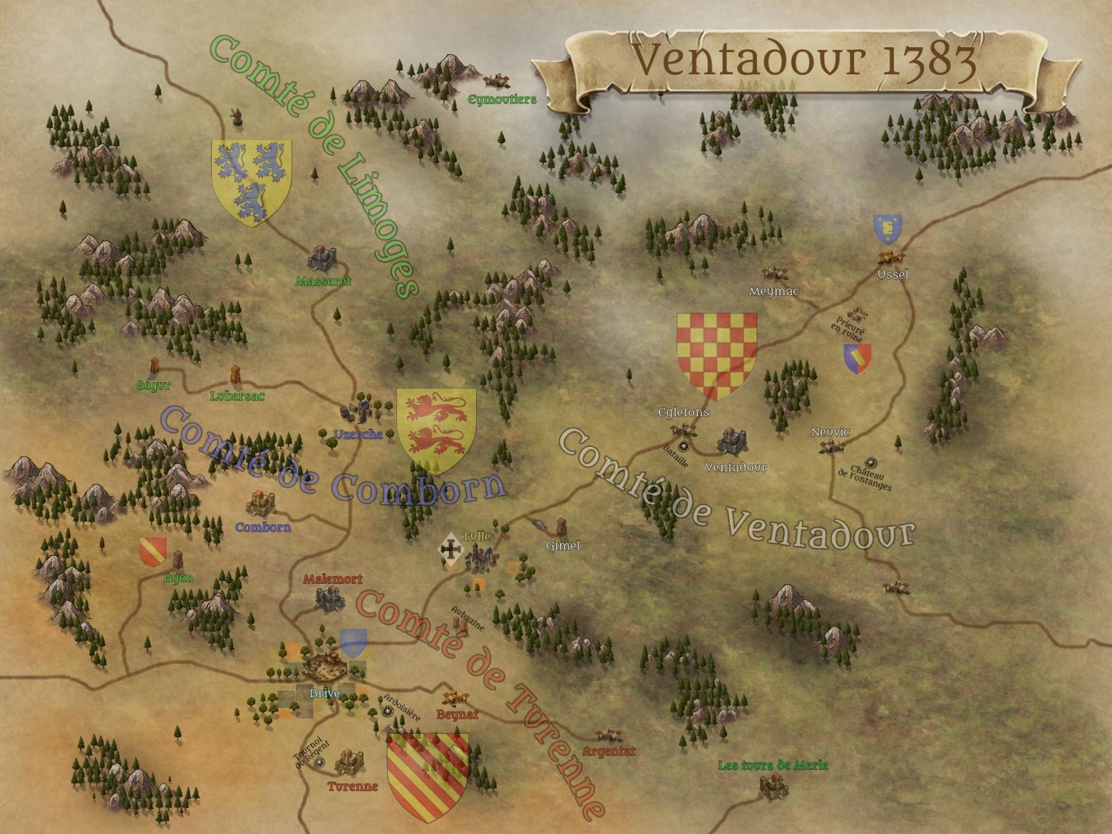 Mes joueurs sont affiliés au comté de Ventadour et découvrent le reste de la région petit à petit au gré des alliances, des complots et des trahisons...
