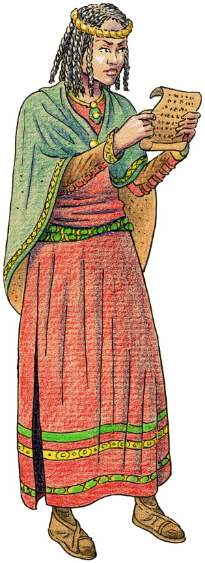 Ici, nous avons l'exemple d'une magistrate shyve. Pour elle, le commandement d'éclaireurs shyves, très mobiles et complets, bien qu'assez mal équipés, est l'idéal. Mais les javeliniers shyves sont plus redoutables encore dans le combat à distance. Et si elle veut une protection ultime au corps-à-corps, les soldats blancs shyves sont parfaits.