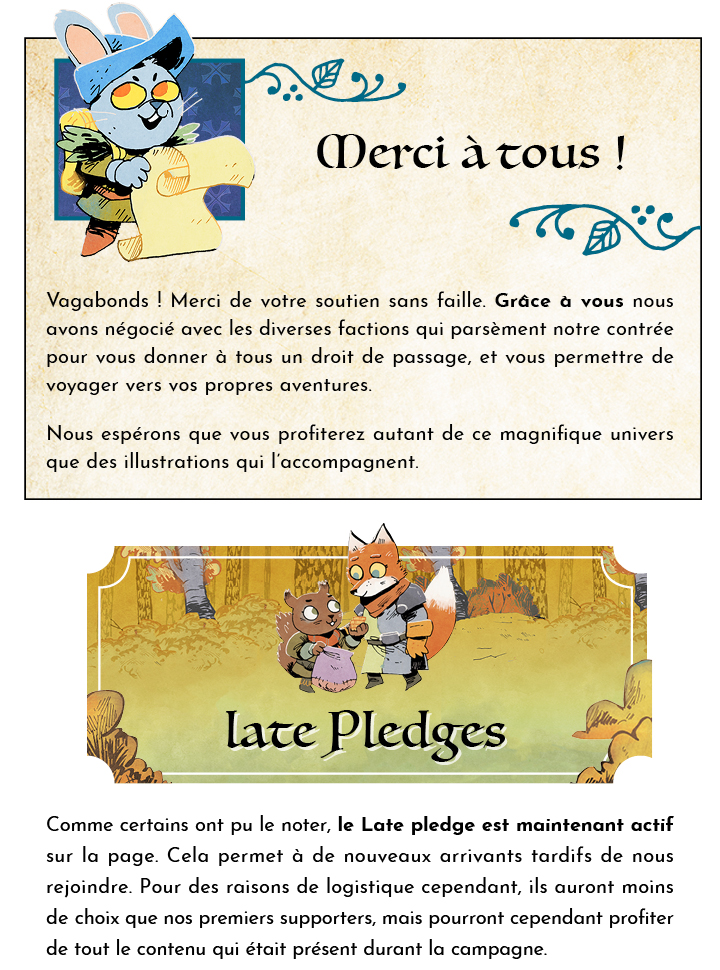 Je me permets un petit coup de ré-éclairage sur cette campagne d'un jeu qui - je trouve - mérite de trouver son public, vu qu'il y a un regain de communication sur la page, avec des nouvelles fraiches et des objectifs plus visible.