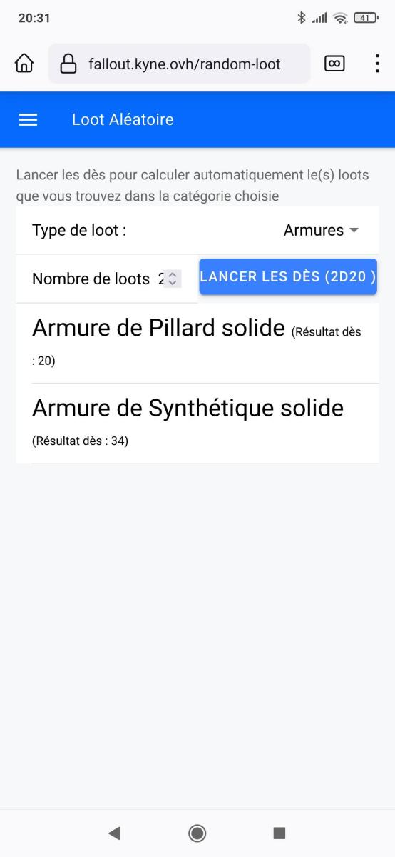 [Fallout 2D20] Application mobile d'aide au jeu 1