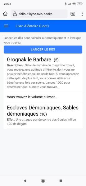 J'ai commencé à travailler dans mon coin sur une application web (pour mobile ou tablette) qui peut servir d'aide pour le JDR Fallout. Vous pouvez la tester ici : https://fallout.kyne.ovh