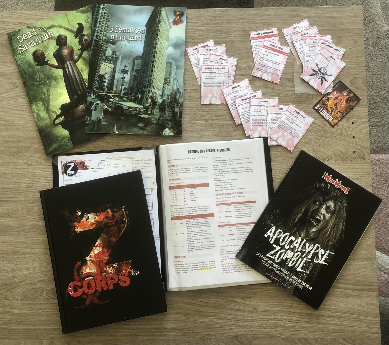 - Mon dossier de pdf Z-Corps (le livre de base édition révisée, 8 Semaines plus tard, Aventure Clinique apocalypse 2, carnet du Survivant, Dead in Denver, Dead in Savannah, Ecran + scénario, Manuel du contrôleur, UnDead on arrival, et mes fdp maison)