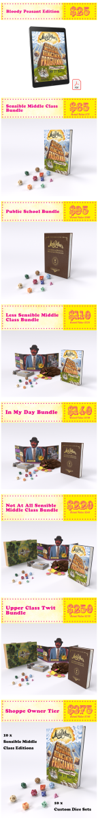 Il y a des dés 14, 16 et 18 ! Et des mini catapultes pour Fethez la vache. Ces gens sont fous. Ni !