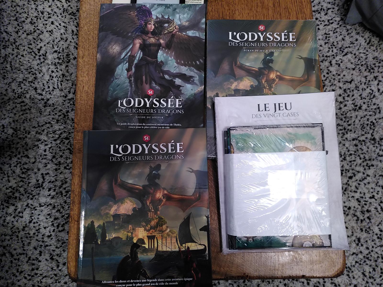 - Livre de campagne L'Odyssée des Seigneurs Dragons avec les bonus débloqués (fiches de personnages, plans, jeu des vingts cases) lors du financement participatif.