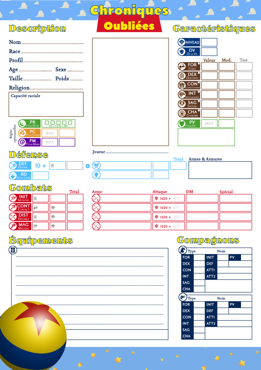 (J'ai commencé par l'amusement et ai fait une version Toy Story de ma fiche de perso