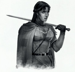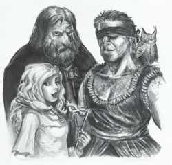 Hilda ne mentait pas et les bruis étranges autour de nous ne sont guères rassurants. Les arcs bandés autour de nous ne le sont pas tellement plus mais enfin nous touchons au but. Baragaz parvient à calmer les hostilités et Anders ressent une atmosphère moins hostile dans cette partie des bois. Nous nous retrouvons donc face à une trentaine d'hommes et femmes ayant choisi une vie de rapine plutôt que de soumission. Tous portent un brassard jaune pour "s'indentifier" dit l'un d'eux. Curieux choix. Le chef de cette belle bande de gredins est une jeune fille prénommée Sigrid. Le symbole de Rhya autour de son cou aurait pu la rattacher à la prêtrise comme Astrit mais son comportement est bien plus guerrier. En un mot comme en cent, elle nous compte sa tragique histoire. Son mari a été capturé et probablement tué par Dame Margritte, la jeune héritière de la famille. D'après Sigrid, cette dépravée se livre à toutes sortes d'expériences nécromantiques et elle compte bien mettre un terme à son emprise sur le bourg. Elle dispose d'un passage secret vers le château et tout ce qui lui manquait étaient des gens avec l'expérience et l'envie de renverser la donne. Nous voilà donc arrivés à point nommé. Après un bref repos, nous partons vers le réseau de cavernes indiqué.