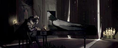C'est alors que j'entendis la musique des astres s'élever d'une tour esseulée dans la cour. Une personne capable de si bien jouer ne pouvait pas fondamentalement être mauvaise . Je m'y risquais et me retrouvais plongé dans le noir, la désagréable impression que des nuées de cafards et de blattes montaient sur mes vêtements. Je montais à l'étage vers le piano malgré mon dégoût. Le concertiste était un cafard. Un cafard géant richement paré avec une perruque. Il se révéla être un individu, muté, mais d'une douceur et une gentillesse exceptionnelles. Le Graf Ludwig Von Wittgenstein m'expliqua sa triste histoire. Homme sain d'esprit parmi les fous et affligé d'une terrible mutation. Je lui expliquais la raison de notre venue et même s'il ignorait où exactement était cachée la malepierre de son arrière grand père, il m'aida dans mon entreprise en révélant la présence d'une arme légendaire ayant appartenu aux guerriers Sigmarites d'antan. Une telle arme pourrait aider à venir à bout du guerrier du chaos. Il y avait juste un petit problème : la chapelle où la sépulture avait été transportée était désormais un lieu de débauche à cause de son jeune fils Gothard. Je buvais ses paroles et me préparait au pire. Il me donna sa bénédiction pour mettre fin à la vie de sa femme et ses enfants dégénérés. Il insista par contre pour que je sauve Sigrid, retenue parmi "les cages à oiseaux". J'acquiesçais et je pris mon départ. Je savais bien que je ne reverrai jamais le Graf et que sa vie touchait à sa fin.