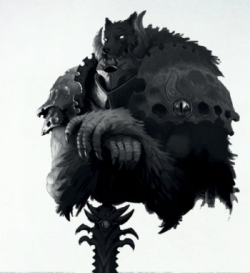 Traînés hors des geôles par les mains brutales de notre bourreau ogre, nous tombâmes à genoux dans la haute cour du château. A nos pieds, des armes rouillées sensées nous offrir une chance contre le géant face à nous. Je réalise que c'est le tueur de l'observatoire, un guerrier de Norsca. A l'étage, je vois une vieille bique et… Baragaz à ses côtés. Je n'écoute pas. Il ne met à jouer et le guerrier s'avance vers nous. Le combat est brutal. Le guerrier est meilleur que nous et ses bras s'allongent et se distordent à l'envie. Baragaz hurle quelque chose entre deux chansons. Waltram comprend et court vers une grille au milieu de la cour. Ludwig s'effondre en hurlant, le guerrier vient de lui briser le genou. L'os ressort. Waltram glisse et menace de tomber entre les lattes. Des bruits ignobles surgissent de la fosse. Anders vient à sa rescousse et les deux reviennent avec une immense épée entre les mains. Je m'en saisis à la première occasion. L'artefact pénètre l'armure et la chair du guerrier comme du beurre. Mes compagnons se déchaînent avec toute la force du désespoir contre le titan. Enfin, il tombe. Ludwig est mourant. Par chance, les gardes n'ont pas été conviés à l'affrontement, tout le monde nous pense morts. Une aubaine. Baragaz saute dans la cour et nous explique peu ou prou ce qui se passe. Sauver Sigrid, tuer tous les Wittgenstein et détruire la malepierre. La règle des trois.