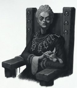 Je me réveillais dans un lit soyeux couvert de poussière. La chambre bien que richement dorée n'invitait pas au repos. Il y faisait très froid et tout semblait abandonné. On toqua à la porte. J'avais été dépouillé de mes armes à l'exception de ma cornemuse. Deux gardes se tenaient devant moi et m'escortèrent promptement à travers les ailes du château jusqu'à un petit salon. Sur un siège se tenait une vieille folle avec des chats partout autour d'elle. Les chats présentaient tous des difformités impensables : troisième œil, peau rapiécée, plumes à la place du pelage. Derrière la vieille était présente une série de trophées allant du chevreuil au percepteur d'impôts. Lady Ingrid Wittgenstein prit la parole et je me força à écouter. Au milieu des simagrées de la matriarche dégénérée, je compris l'essentiel : mes amis étaient prisonniers dans les geôles et demain ils seraient livrés en pâture à un "invité" pour le divertir. Tout cela prendrait place dans la cour du château sous l'œil de la vieille. Et mon rôle dans tout cela ? Jouer de la musique. Les Wittgenstein avaient eu vent de ma réputation et pour la première depuis longtemps cette cornemuse devenait un atout.