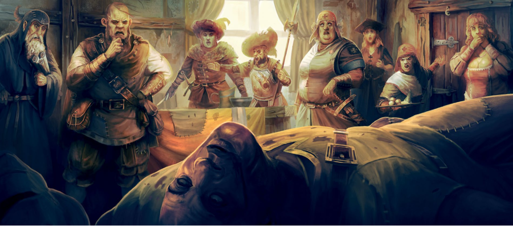 Durant la nuit, le champion de justice de la Gravin a été assassiné au moyen d'une dague. Pas de chance, c'est l'un de mes compagnons qui est accusé par la Gravin du meurtre ! Plus fou, elle désigne immédiatement Baragaz comme son nouveau champion de justice ! Son mot fait loi et dans la salle commune, il n'y a bien que Philippe Descartes pour sourire à cette nouvelle. Nous découvrons plus tard qu'il s'agit d'une supercherie de sa part pour démasquer le vrai coupable. Bon an, mal an, nous voilà temporairement au service de la dame. D'après elle, l'assassin a été recruté par les Von Damenblatz, une famille noble humiliée par la Gravin. Pas de champion de justice, pas de défense, c'est assez simple à comprendre. Nous attendons donc tous dans une chambre, au milieu de la nuit noire que l'individu attaque.