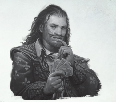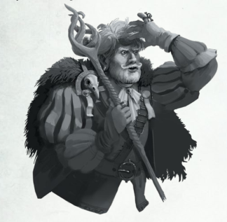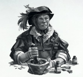 Le dernier est un étrange herboriste du nom de Waltram. Il vient du Talabecland et répond à mes questions par d'autres questions. Il est accompagné par un chien à la pelure grise et dépareillée qui ne porte pas de nom. Drôle de type, je devrais m'en méfier.