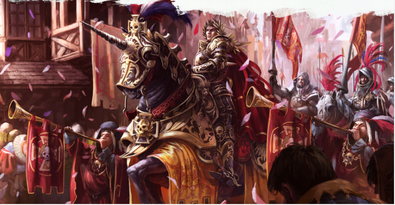Très rapidement, plusieurs invités furent pris de profonds malaises avant de manifester des signes de mutation avancée. Les nains comprirent que de la poudre de malepierre avait été glissée dans le punch. Prenant les devants, j'ordonnais aux gardes d'inspecter chaque personne présente à la soirée et d'envoyer les infectés dans une pièce que je me préparais à passer au feu. Le seigneur Von Holzenauer protesta et la situation menaça de dégénérer encore plus vite. C'est alors que le chevalier panthère retira son casque dévoilant une femme ! Lady Nacht était là et usa immédiatement de son autorité pour appuyer mes ordres. Cette soirée cauchemardesque se termina au petit matin avec un nuage de fumée et une odeur de chair humaine brûlée. Il est toutefois impossible de réaliser une omelette sans casser des œufs et je venais de faire la même de toutes les omelettes.