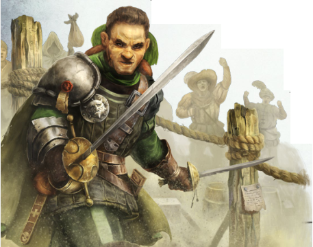 Le duel reprend son cours et cette fois c'est une explosion sourde qui résonne derrière le palais de justice. Quelques minutes plus tard, Ludwig nous rejoint dans l'assemblée, un sceau d'excréments sur la tête. Il nous raconte avoir rencontré un chic type en prison qui l'a invité à boire un coup dans une auberge située dans l'un des quartiers mal famés de Bogenhafen. Chic type qui j'espère se révèlera utile car le sceau officiel de la Gravin nous a été dérobé pendant le duel ! Le voleur s'avère être ce foutu halfling croisé à l'auberge des Trois Plumes qui n'est pas du tout un halfling mais un gnome.