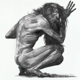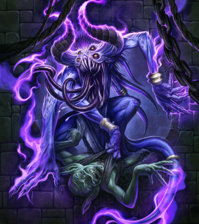 La trace du gnome nous amène dans les égouts de la ville. Au milieu de la puanteur, Baragaz, Ludwig et moi-même traversons boyaux et couloirs à l'affut des bruits de pas du satané voleur. Notre traque se termine dans une petite pièce aux murs de pierre, située sous l'un des bâtiments de la ville. Mais quid du gnome, à sa place se tient une abomination violette qui tient le gobelin dans l'une de ses quatre griffes.