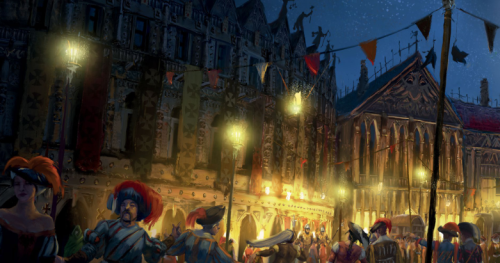 La noire cité de Nuln nous accueilla sous des trombes d'eau froides. La journée était encore jeune et chacun partit en quête de costumes ostentatoires pour se fondre dans la soirée. Je trouvais un costume de bouffon à masque de lune sans grande difficulté. Les résultats de mes compagnons furent plus hasardeux. Waltram ne fit presque pas d'effort, Baragaz allait donner un coup de main aux brasseurs nains et n'en avait donc pas besoin. Ludwig trouva un simple loup et Anders, Sigmar seul sait comment, arriva le soir avec un crane de griffon sur la tête. Renata préféra garder le Berbeli tandis que la gamine d'Unterbaum fut habillée en noble pour l'occasion, des étoiles pleins les yeux.