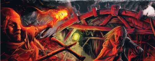 Waltram et Anders reviennent d'une autre dépendance, le corps griffé de Sigrid dans les mains. La fille est vivante. Elle vient de passer une nuit au milieu d'hommes oiseaux prêts à becqueter le moindre orteil ou doigt dépassant de la cage. Ludwig nous rappelle avoir vu quelque chose de curieux dans la geôle et se demande si la chambre secrète ne serait pas là bas. Diantre ! J'aurai voulu y penser avant d'y mettre le feu. Nous bravons les flammes et descendons à nouveau dans notre lieu de souffrances. Les flammes révèlent une paroi amovible, nous y entrons sans attendre.
