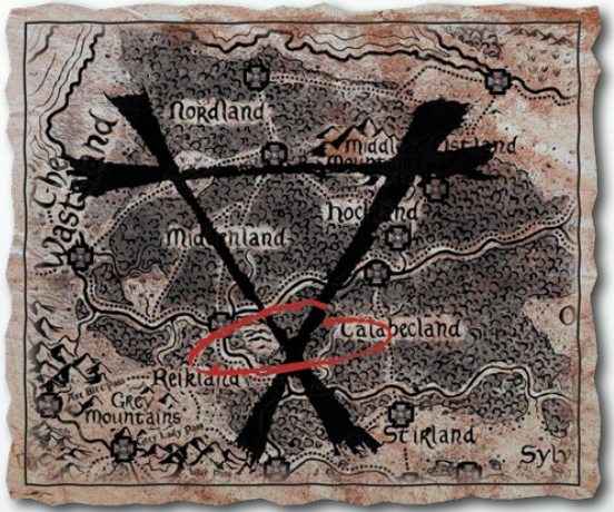 Quelque chose d'étrange et important pour la suite de nos rocambolesques aventures doit t'être signalé, cher lecteur. Le magicien était le portrait craché de maître Erhardt ! Et il portait une missive indiquant qu'il était l'héritier désigné de terres au Sud-Est du Reikland. Kastor Lieberung, sorcier, roublard, plus utile dans la mort que dans la vie. Je voyais germer une idée dans la tête de mon compagnon répurgateur. L'héritage n'allait pas resté longtemps sans héritier.