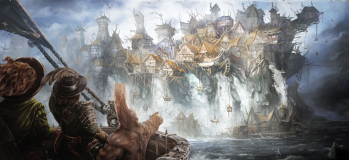 J'amarre le navire de Josef au ponton d'une auberge située devant la cascade. Nous rentrons tremblants dans l'établissement pour prendre un remontant après avoir échappé à la mort. Heureuse surprise le tenancier est un wastelander et entamons une longue discussion dans la langue chérie de notre enfance. Il assure pro bono l'entretien et la réparation du Berebeli durant notre escale dans la vallée en contrebas. Nous décidons que le temps gagné en fonçant vers une mort certaine pourrait être utilisé pour une bonne nuit dans la bonne auberge. Je me couche frigorifié et un peu bourré, pensant à la mort certaine qui nous attendait à plus de 30 mètres plus bas. Erhardt ronfle comme un porc sauvage du Kislev. Je me jure parmi les vibrations du plafond que jamais je ne faillirais comme capitaine de navire !