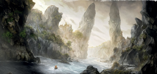 Nos canoés parqués, une marche forcée de deux heures nous amène jusqu'à ce qu'Astrit appelle "le bol du Diable", un immense cratère cerné par des mégalithes protecteurs et réconfortants. Baragaz souffre d'hallucinations et tire la tunique d'Erhardt murmurant avoir vu un fantôme. Le spectre lui intime la direction d'une sépulture au cœur du cratère. Nos deux religieux se focalisent sur les pierres levées, relevant l'espace d'une seconde une épiphanie divine et renforçant les sceaux magiques qui protègent l'endroit. Je reste à l'extérieur de la caverne avec Waltram tandis que Erhardt et Baragaz s'enfonce dans les boyaux souterrains.