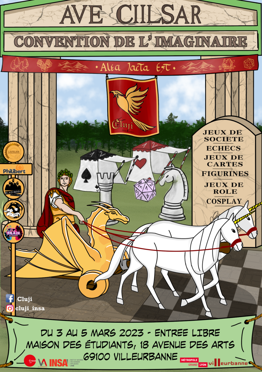 Envie de jouer à des jeux de société en libre-service, de se faire expliquer des règles ? De (re)découvrir le jeu de rôle ? De combattre sur l'échiquier ? De participer à des duels de Magic: The Gathering endiablés ? Alors rendez-vous à l'édition 2023 de la Convention de l'Imaginaire de l'INSA Lyon (CIIL) ! Cette année, sortez vos plus belles toges, l'édition Ave CIILsar met à l'honneur la Rome antique !