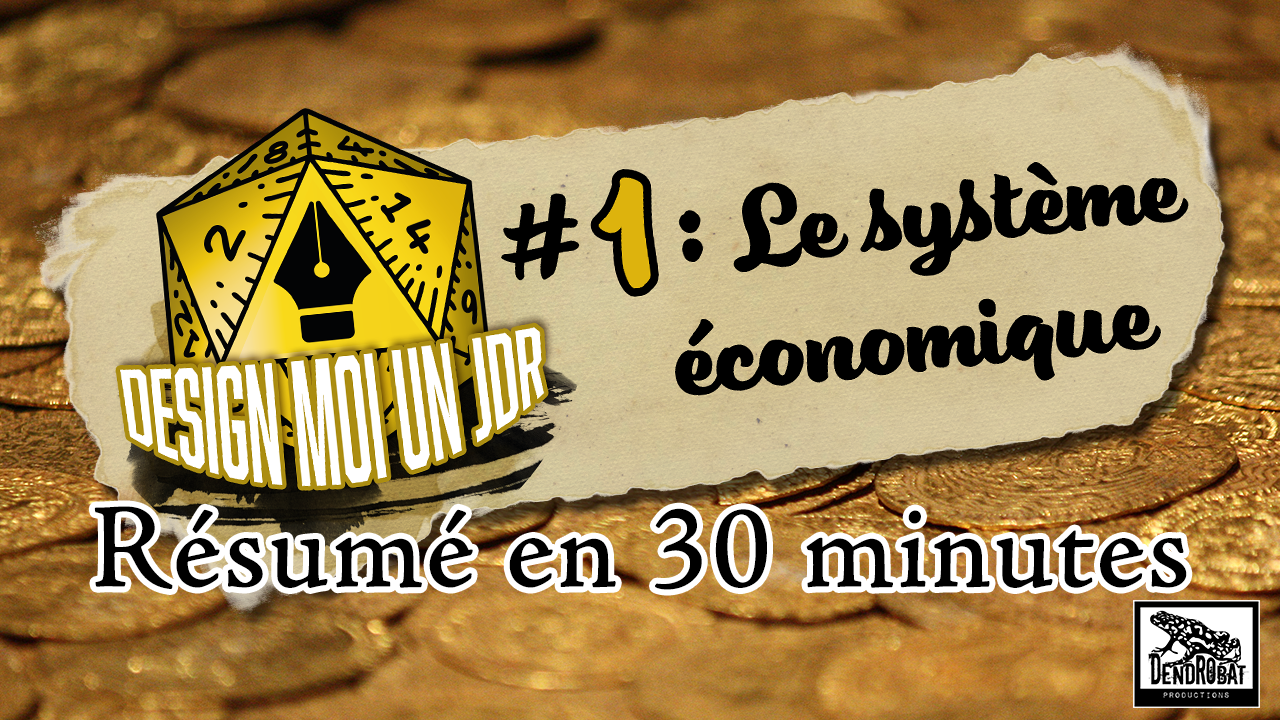 Mardi 28 février 2023, à 21 h, sur ma chaine Youtube (https://www.youtube.com/@dendrobatprod), j’inaugure mon premier live "Design moi un JdR", qui aura pour thème : Le système économique dans un JdR.
