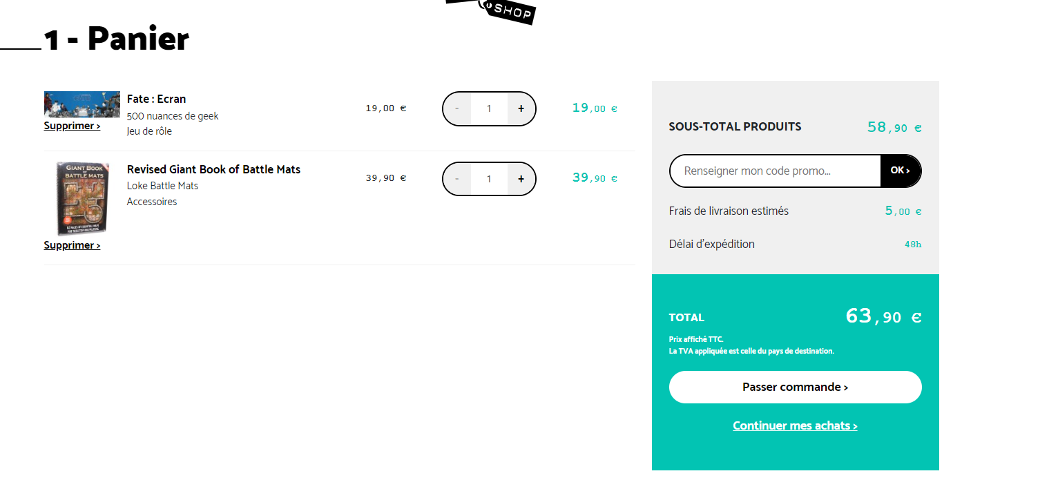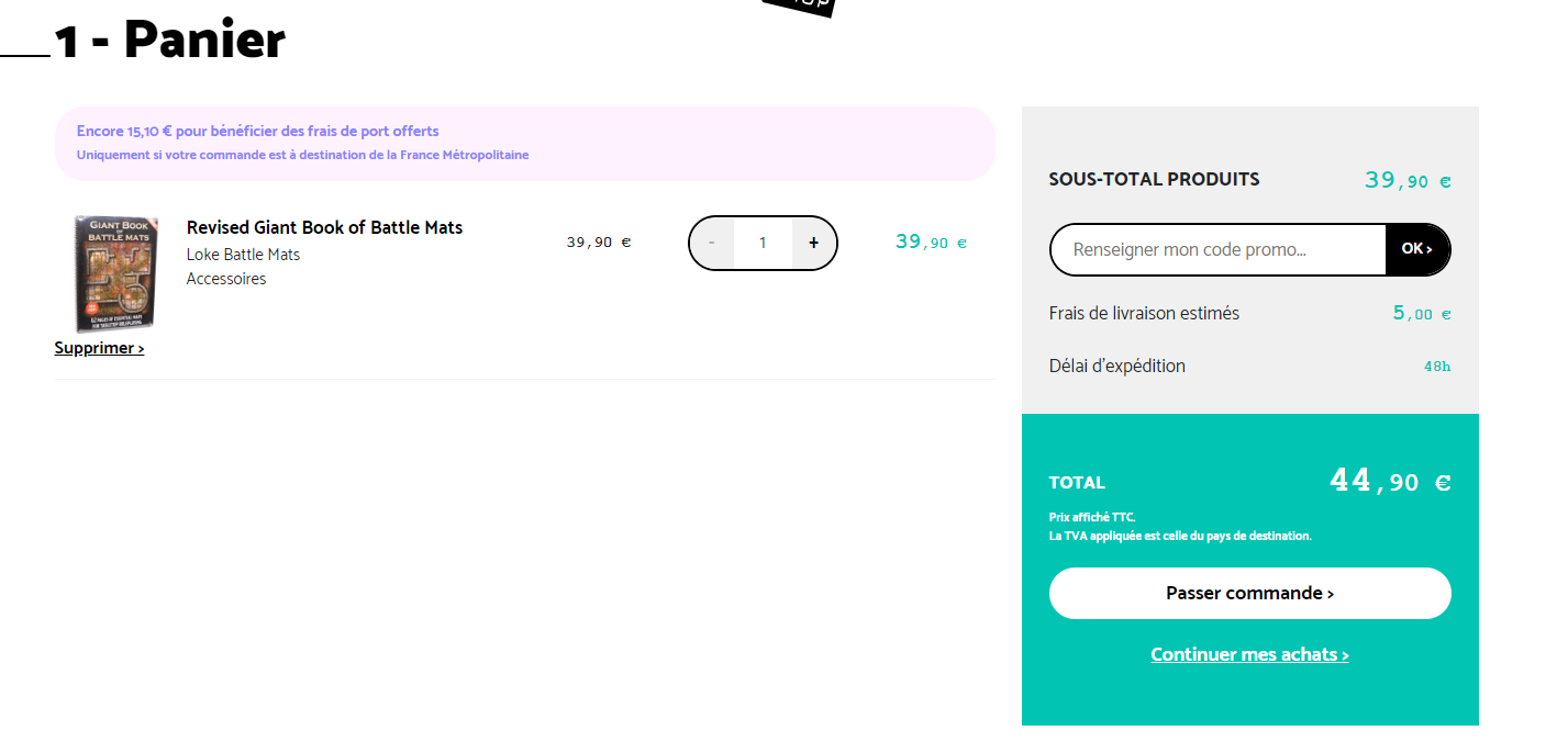 voulant acheter un Revised giant book of battle mats, j'ai eu un message me disant qu'il ne restait plus qu'à commander pour 15,10€ pour avoir les frais de livraison offert.