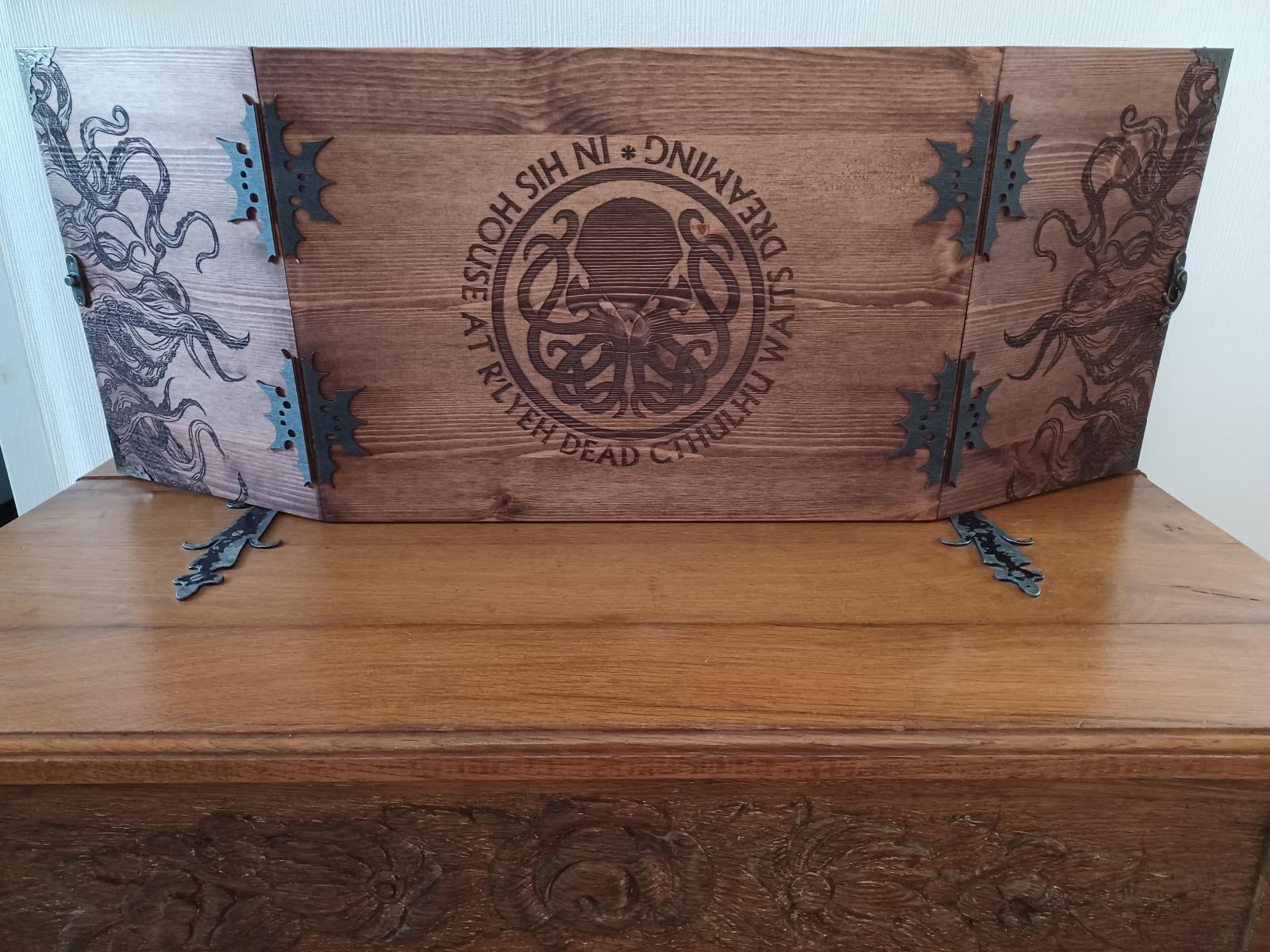 Il s'agit d'un écran personnalisable, facile à transporter, qui possède des volets en métal ce qui permet d'aimanter des aides de jeu sur toute la surface disponible.