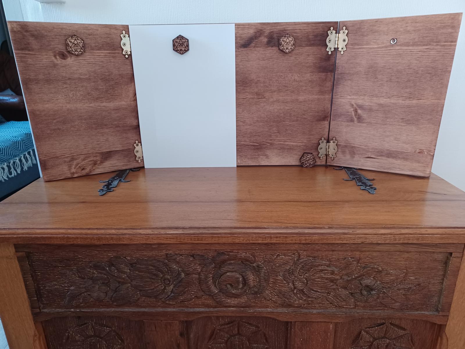 Je commence par un Kickstarter en cours : https://www.kickstarter.com/projects/ultimategamemaster/the-ultimate-game-master-screen/description