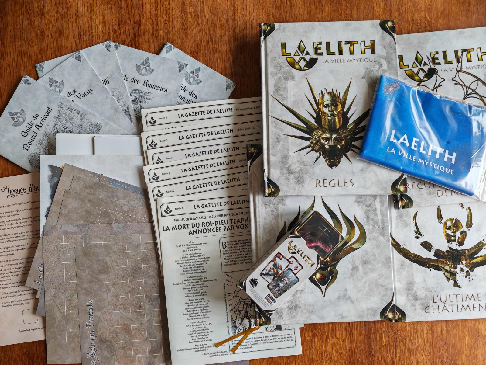 Le lot est composé de Laelith, la Cité mystique + Le Guide pratique + 2 cartes A2 de Laelith.
